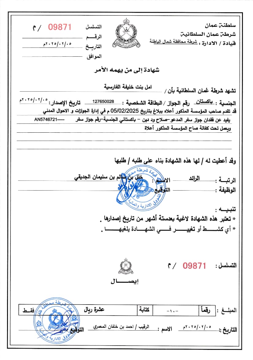 عمان کا فٹ ویزا طبی طور پر کیا جاتا ہے۔ جن پاکستانی بھائیوں کو طبی مسائل ہیں انہیں ضمانت کے ساتھ فٹ رپورٹ دی جاتی ہے۔ ہماری رپورٹ 100% اصلی ہے۔